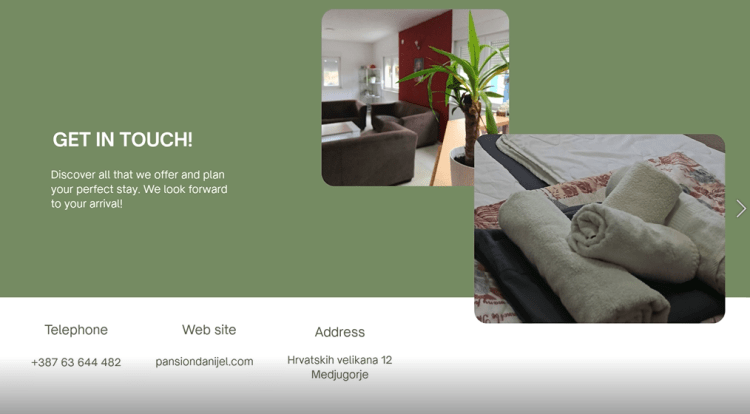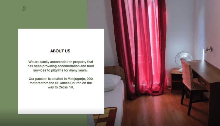 We are family accomodation property that has been providing accomodation and food services to pilgrims for many years. Our pansion is located in Medjugorje, 900 meters from the St. James Church on the way to Cross hill.